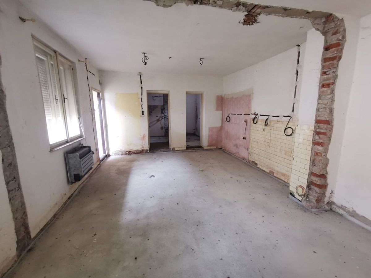 Dispozične pozostáva: priebežný gánok, 3 x izba, kuchyňa, kúpeľňa, WC, špajza, zádverie, sklad, komora.