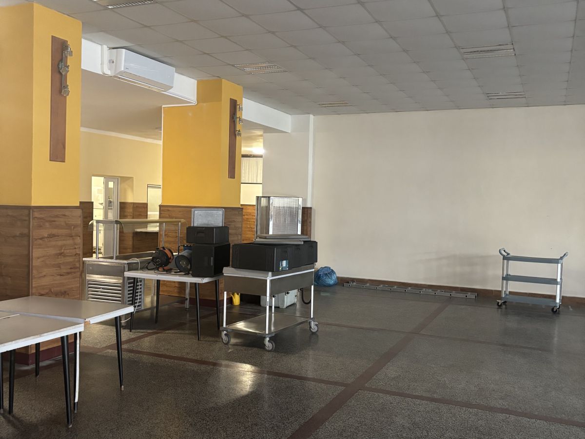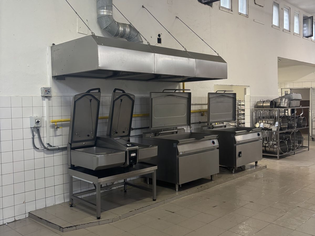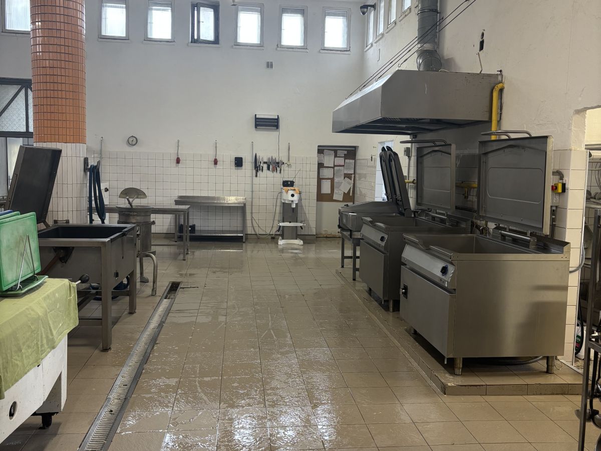 Na prvom nadzemnom podlaží sa nachádza veľká funkčná kuchyňa, kde sa denne pripravovali obedy, priestranná sála s malým pódiom, vhodná na svadby, oslavy alebo firemné akcie, kancelárske priestory a zázemie.